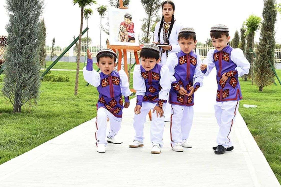 Mekdebe çenli çagalar edara guramalarynda dürli milli oýunlary öwrenýärler. Bu oýunlaryň arasynda toparlaýyn, iki-üç adam bolup ýa-da köpçülikde oýnalýan görnüşleri bar. Şeýle oýunlar çagalaryň biri-biri bilen dostlukly gatnaşyk guramagyny, özara hormat goýmagy we jemgyýetde aragatnaşyk saklamagy öwredýär. Geljekde jemgyýet bilen iş salyşmagyň iň gowy ýoluny görkezýän bu milli oýunlaryň ähmiýeti örän uludyr.
